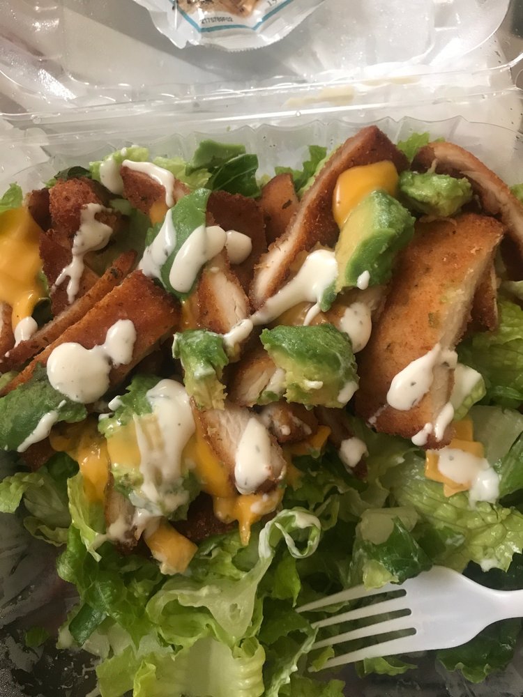 Ever roast chicken, buffalo chicken, melted cheddar, avocado, and teriyaki dressing.