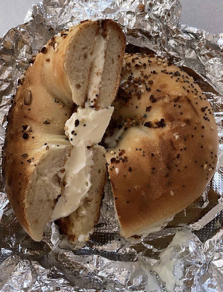 2 dozen bagels ,2 pounds cream cheese ,1 pd flavored cream cheese ,butter and jelly